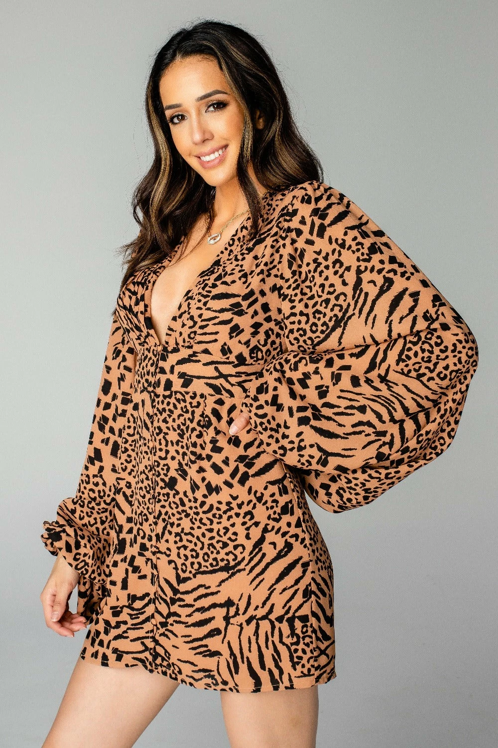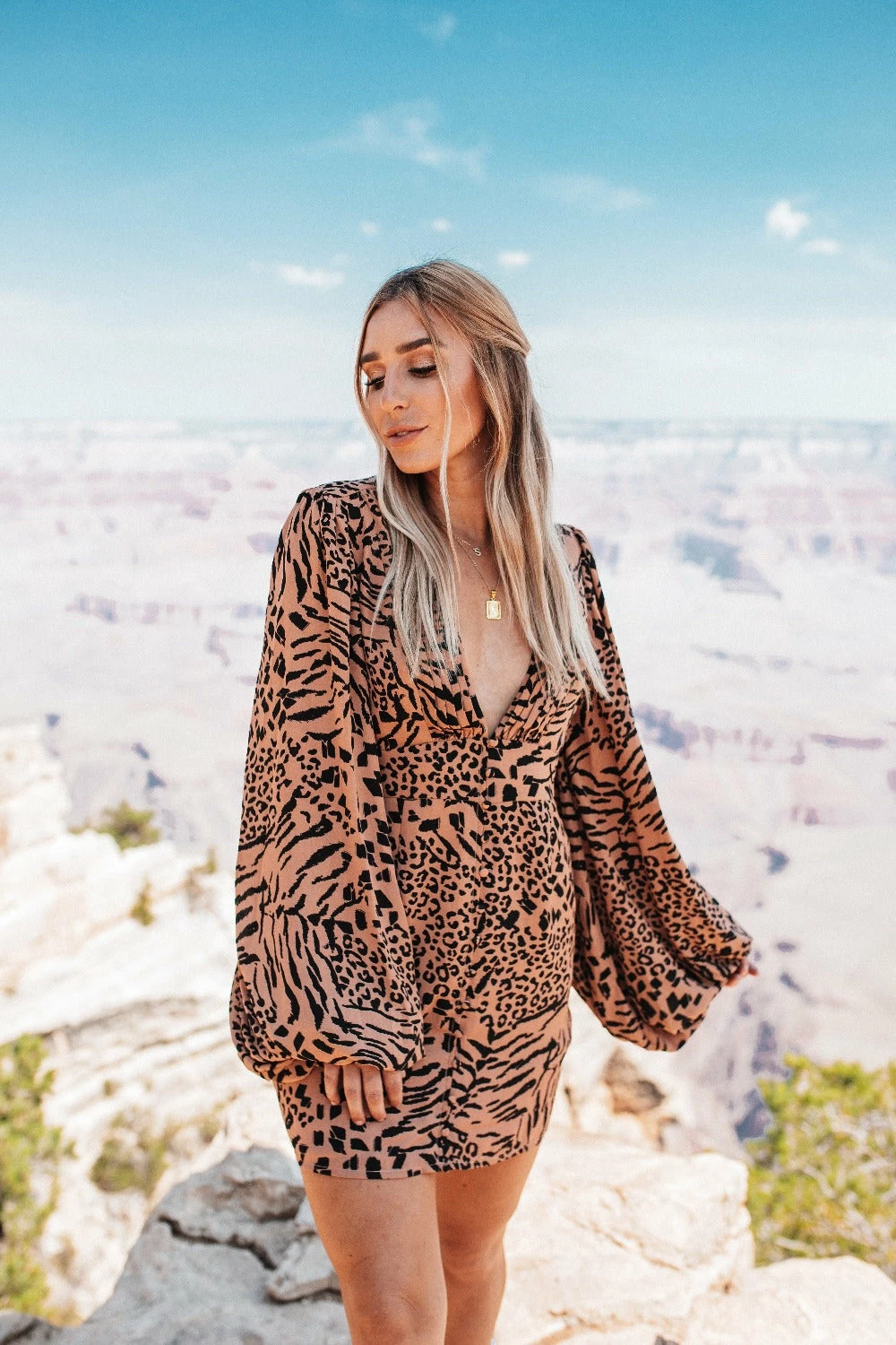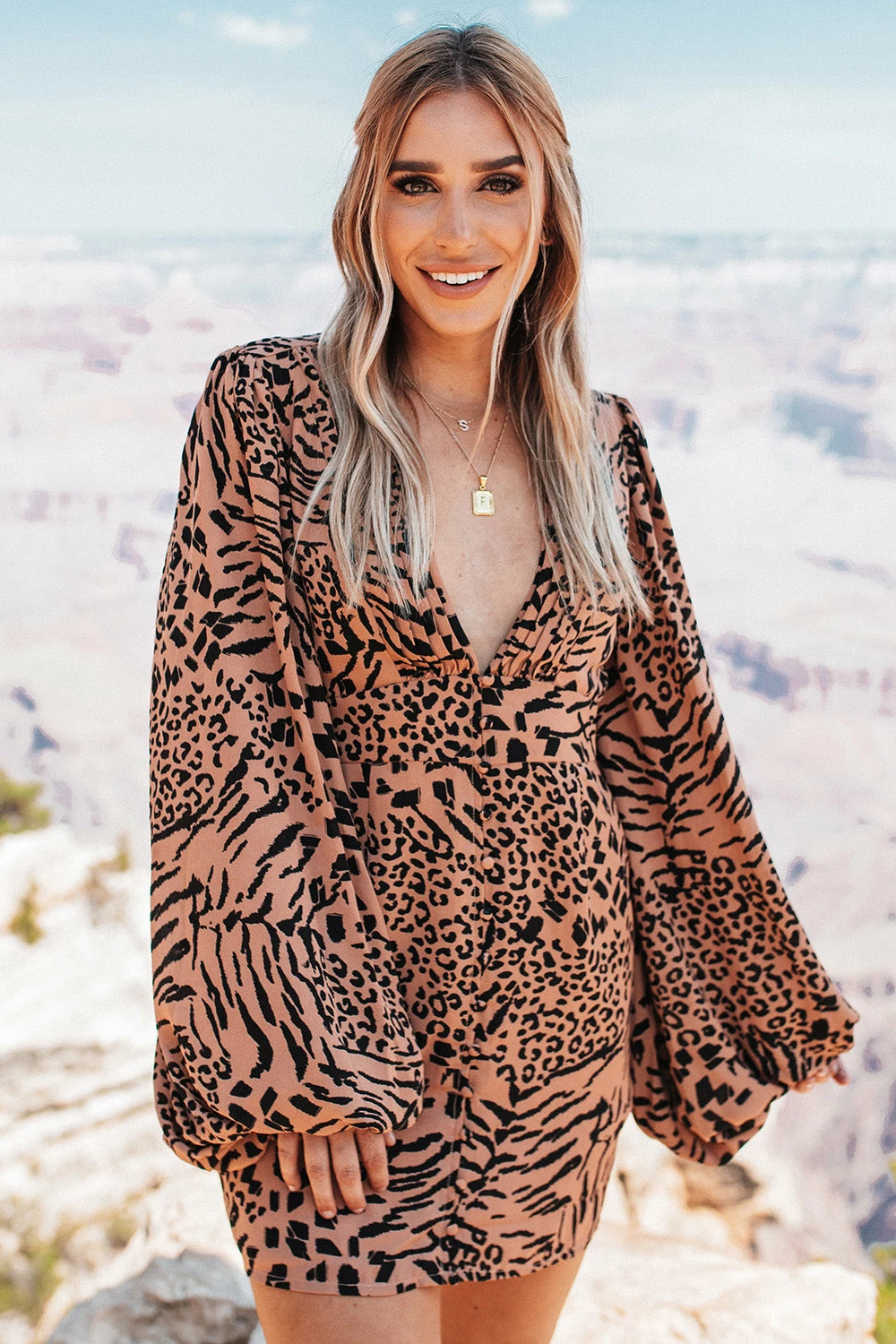 This dress is a SHOW STOPPER! Amber’s large balloon sleeves, back zipper, and faux front buttons make for the most beautiful dress for your next date night or drinks with the girls. Pair her with a classic strappy heel and our Starfish earrings.