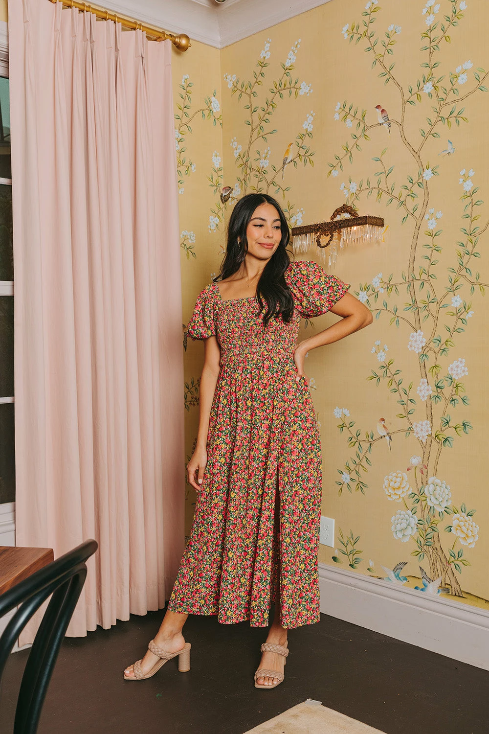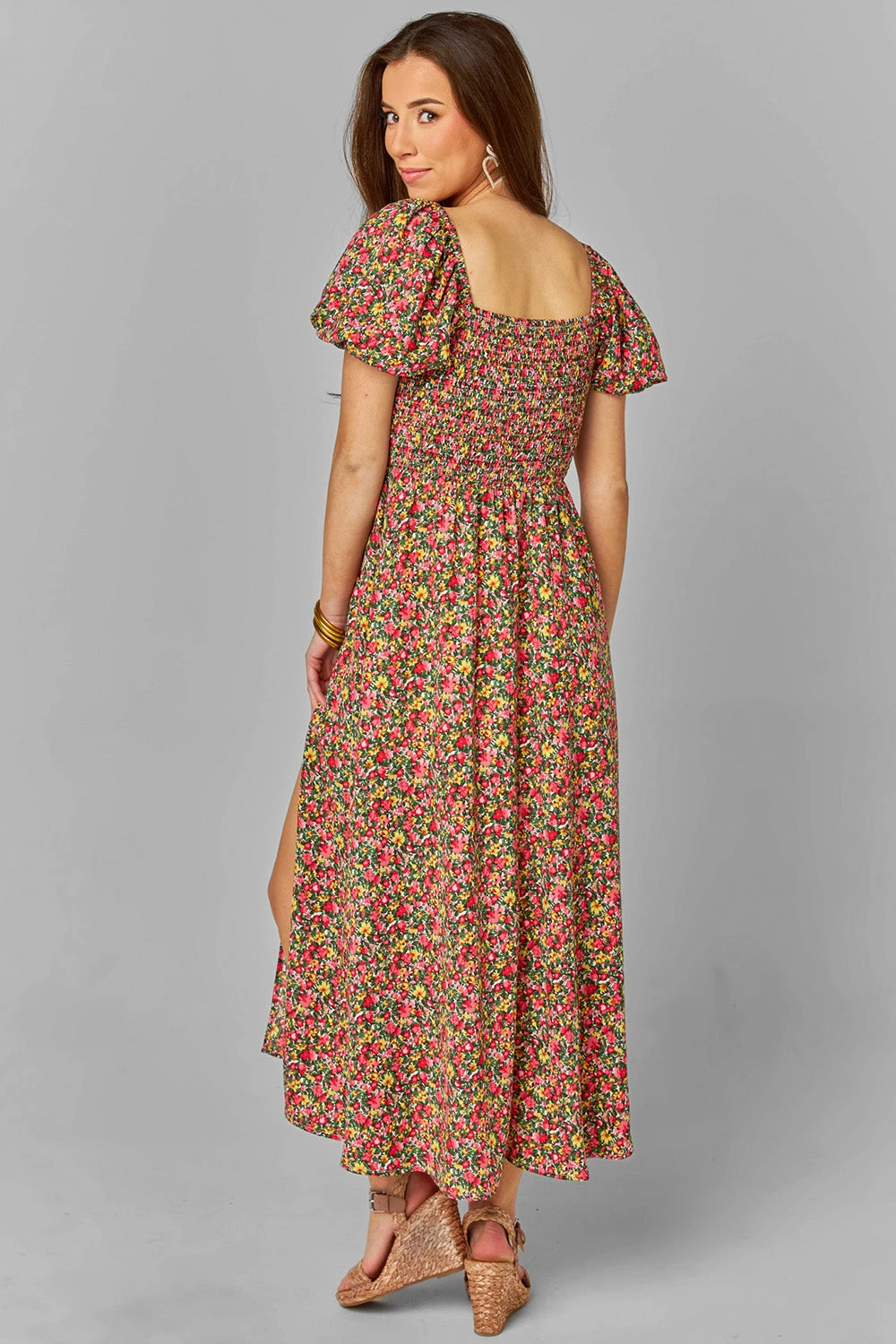 Wander into spring wearing our Babs Smocked Midi Dress. With its square neckline, midi length, and puff sleeves with elastic, this piece is a flattering lighter-weight option for spring days and summer nights. Pair with your favorite sandals or sneakers for a casual, yet put-together look for weekend brunching!