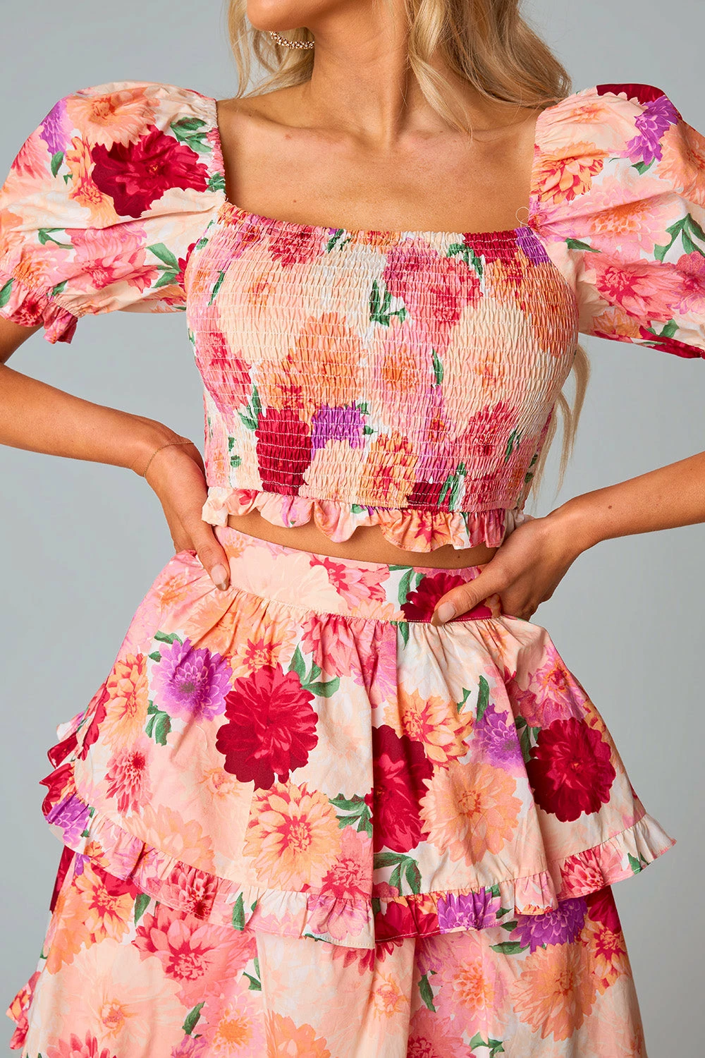 Feeling floral and flirty in The Carina Set! The Carina Set top featuresĀ a cropped length, elastic puff sleevesĀ and is entirely smocked for a comfortable fit. The maxi skirt featuresĀ elastic waistĀ on the backĀ and ruffled tiers.Ā She’s perfect for all your summer events!