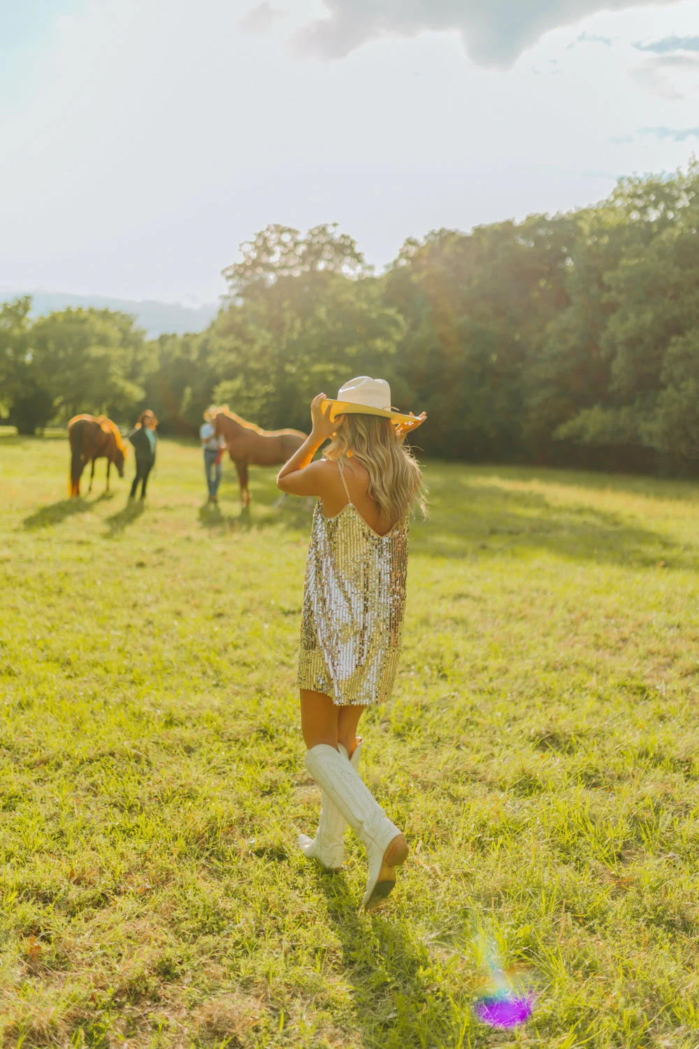 When you walk in the room in the Cleo you’ll make the whole place shimmer! This sequin shift dress features adjustable straps for the perfect fit, v neck, and mini length! Wear her to any concert, bridal shower, or girls night out!