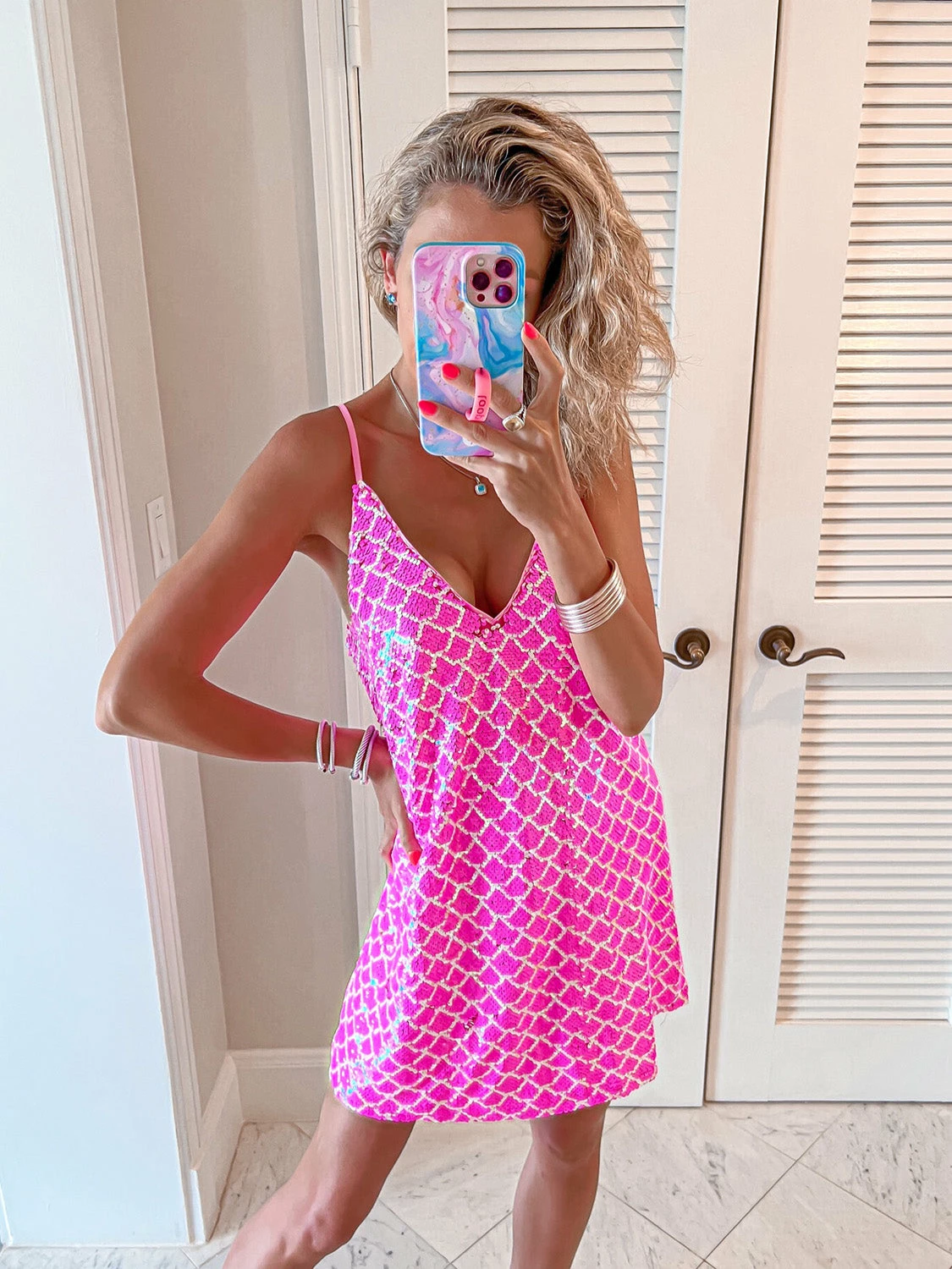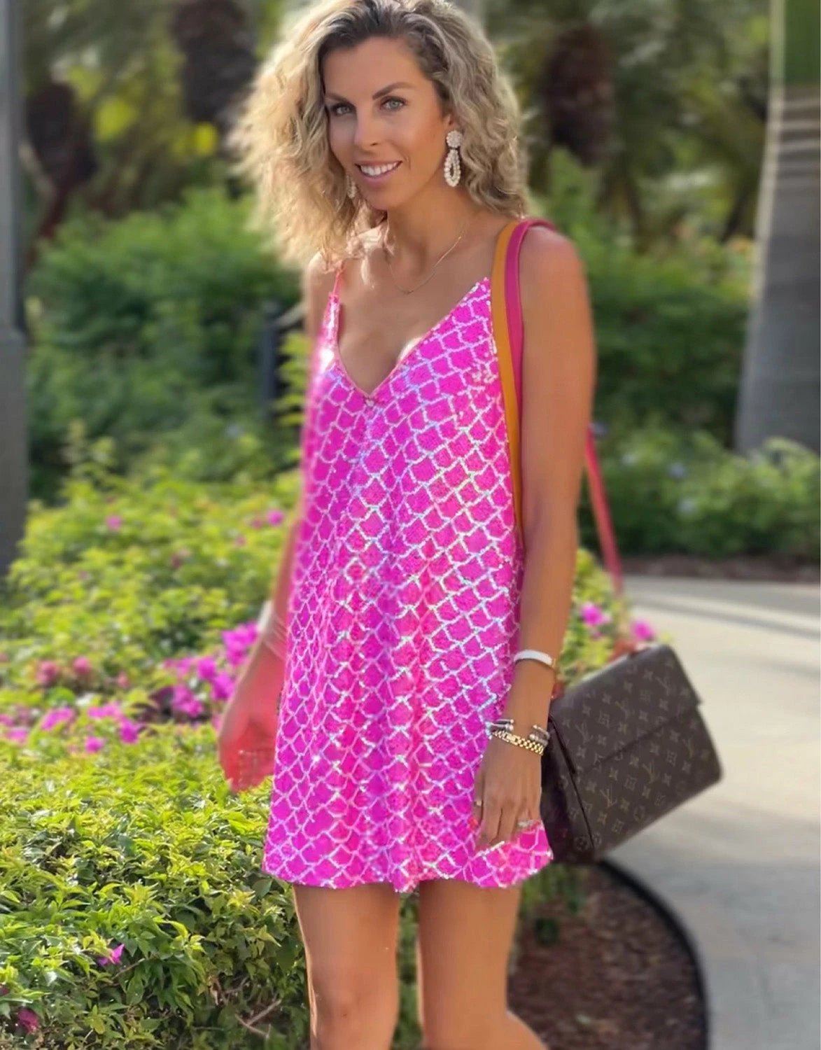 When you walk in the room in the Cleo you’ll make the whole place shimmer! This sequin shift dress features adjustable straps for the perfect fit, v neck, and mini length! Wear her to any party, concert, or girls night out!