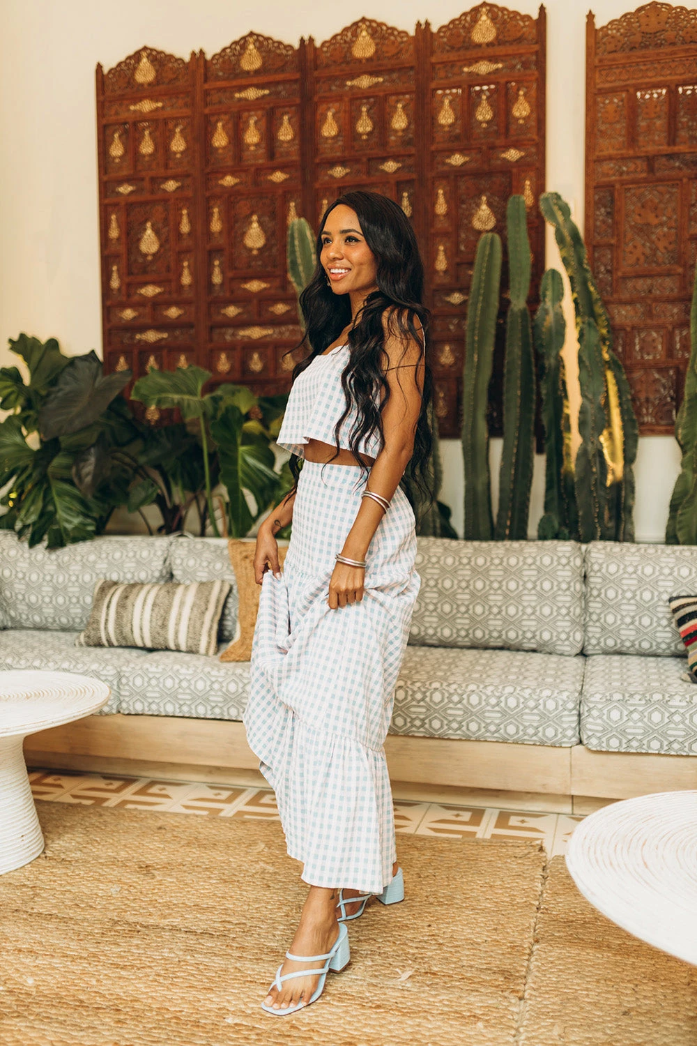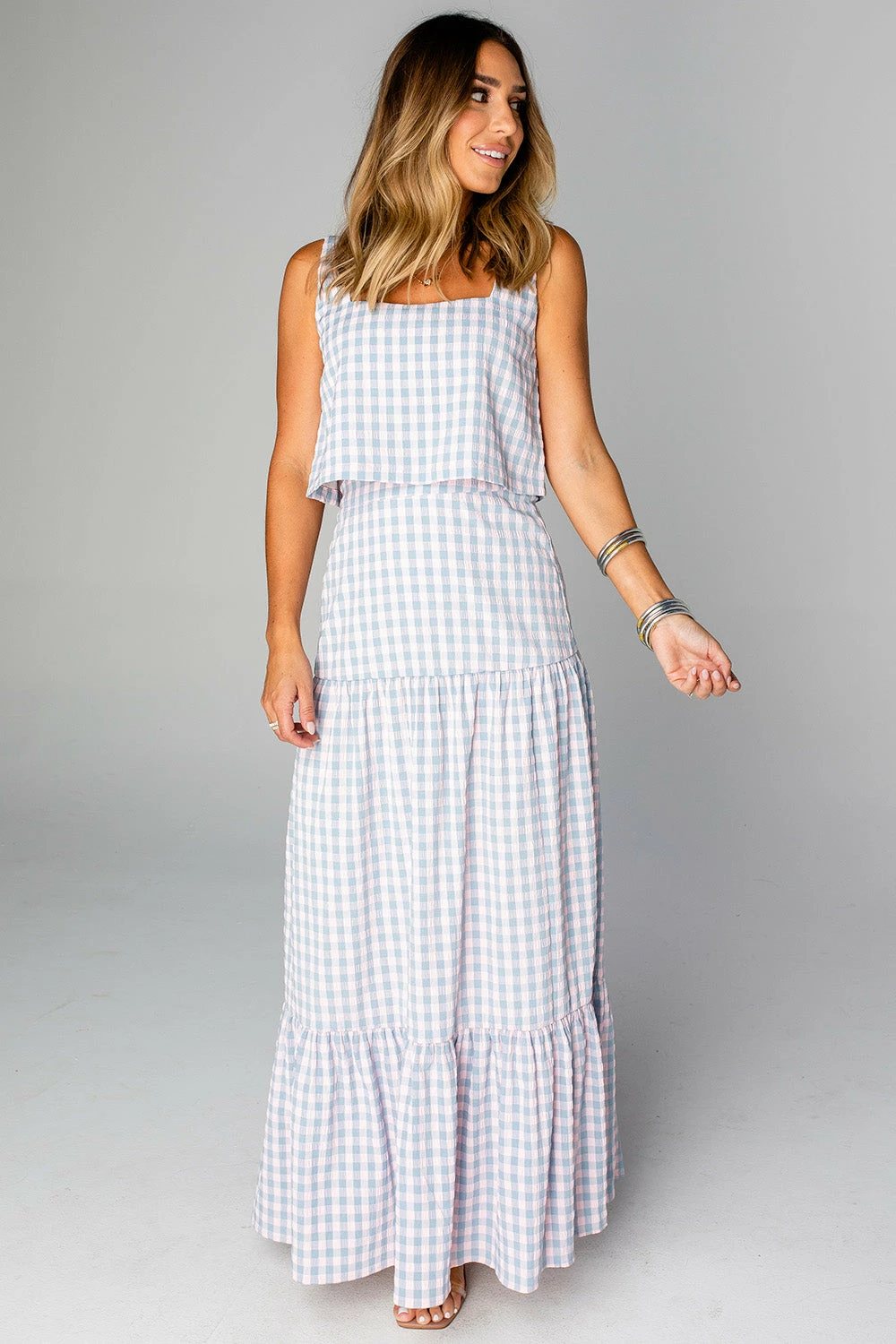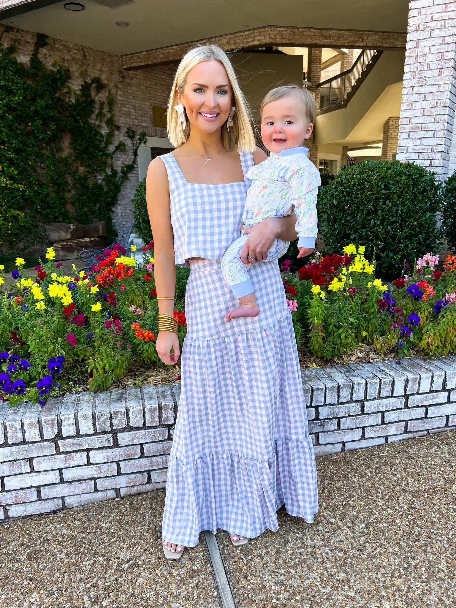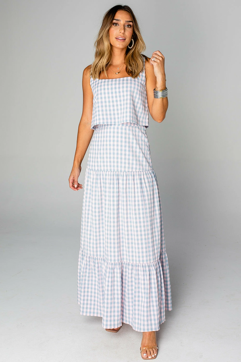 The cutest set has finally arrived! The Cookie Set features a loose fitting tank, elastic waist maxi skirt, and stretch pop fabric. Perfect for a baby shower if you’re team boy, brunch, or any fun summer event you’ve got coming up!
