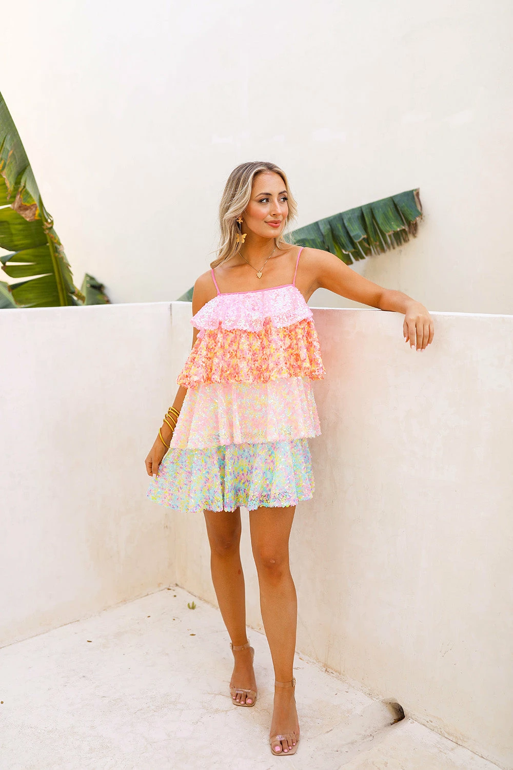 Shake it off in style with the Disco Tiered Sequin Dress! Featuring a unique ruffle tiered sequin bodice, you’ll be the life of the party. Adjustable straps offer a perfect fit and it could even be worn reversible for even more looks! Make it happen in this fun and flirty number.