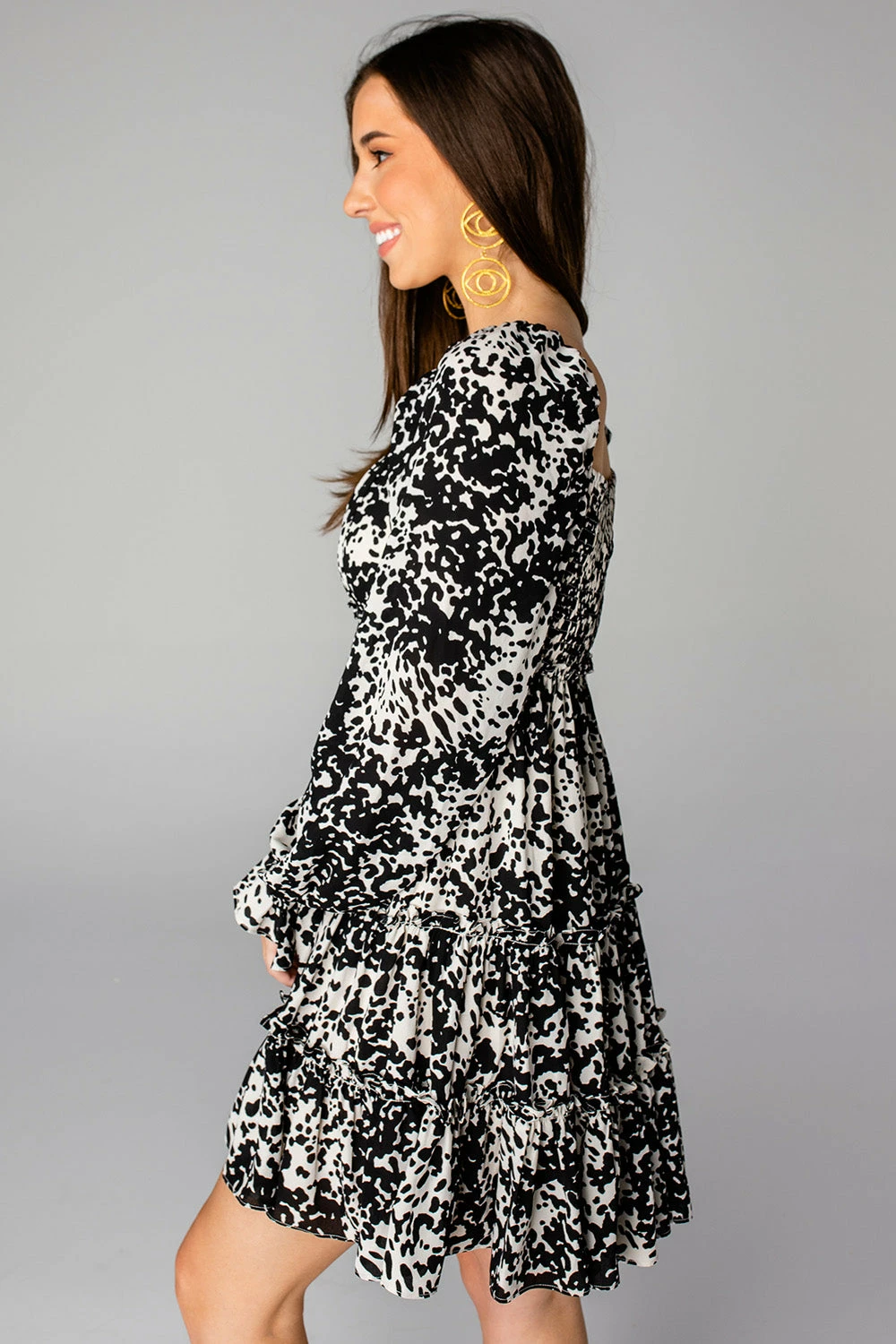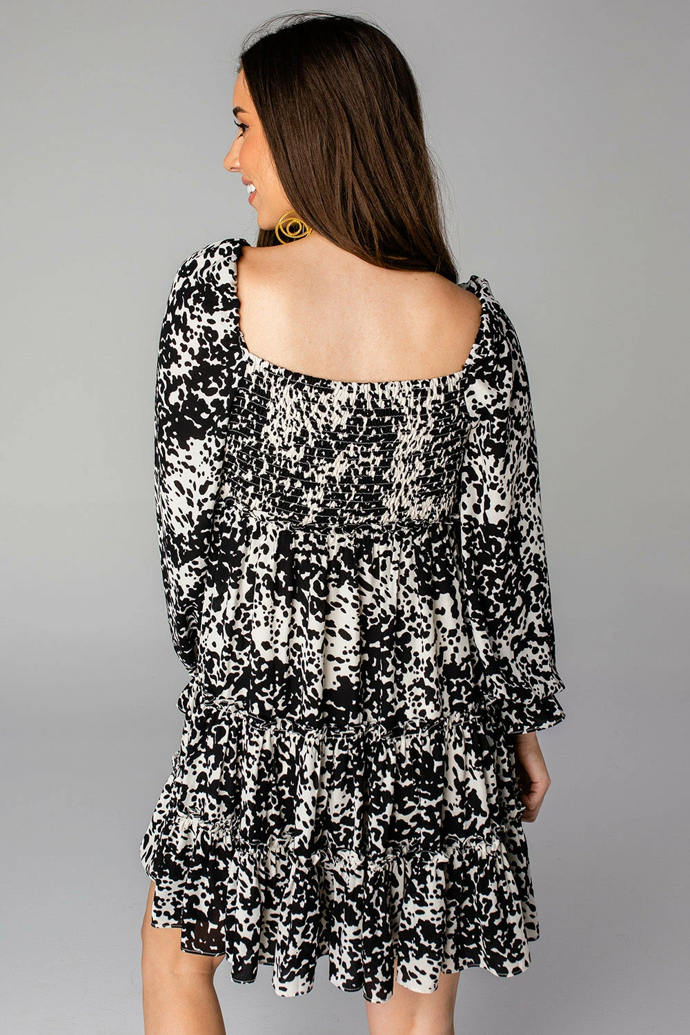 Our Doris Dress features a scoop neckline, elastic shoulder trim, long sleeves with cinching at the wrist, and tiered detail to add some spice! Pair with your favorite booties for an effortless outfit!