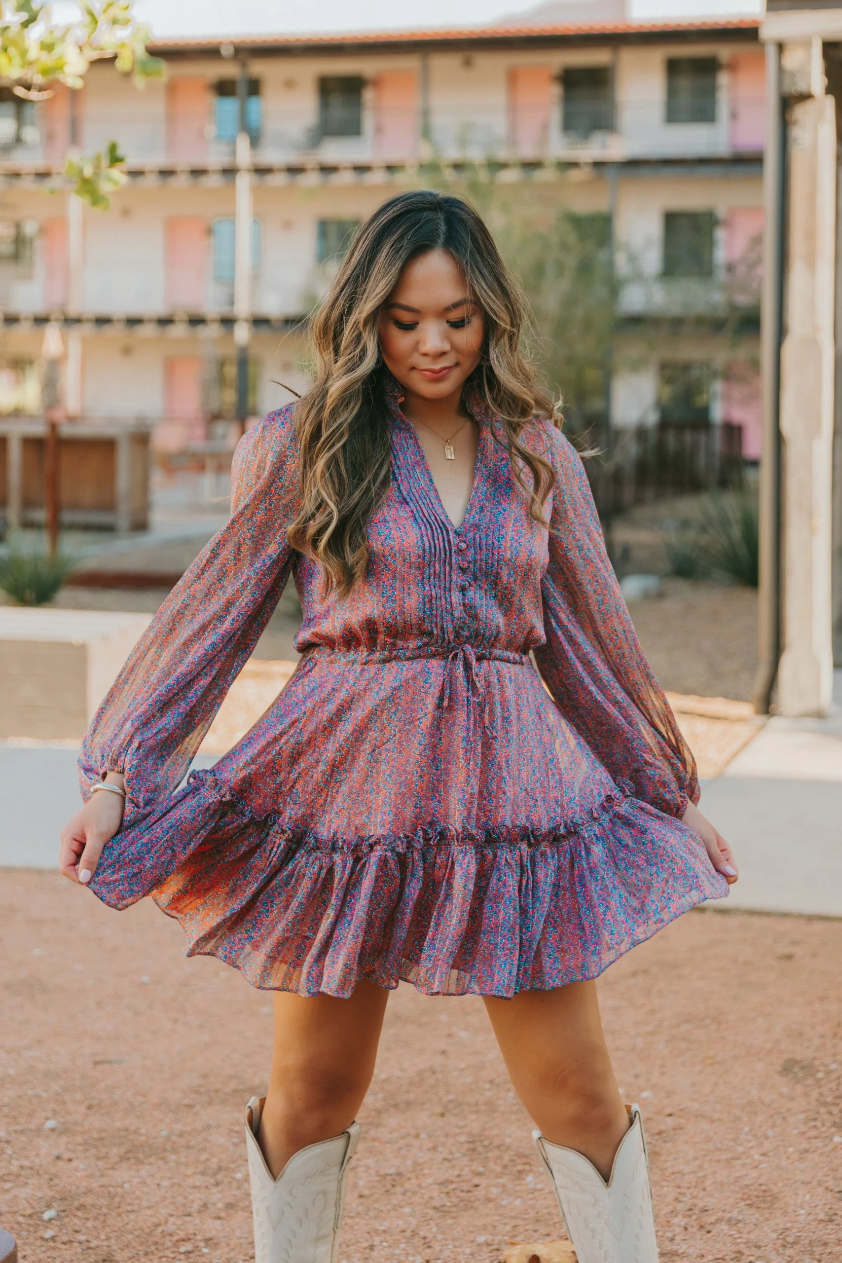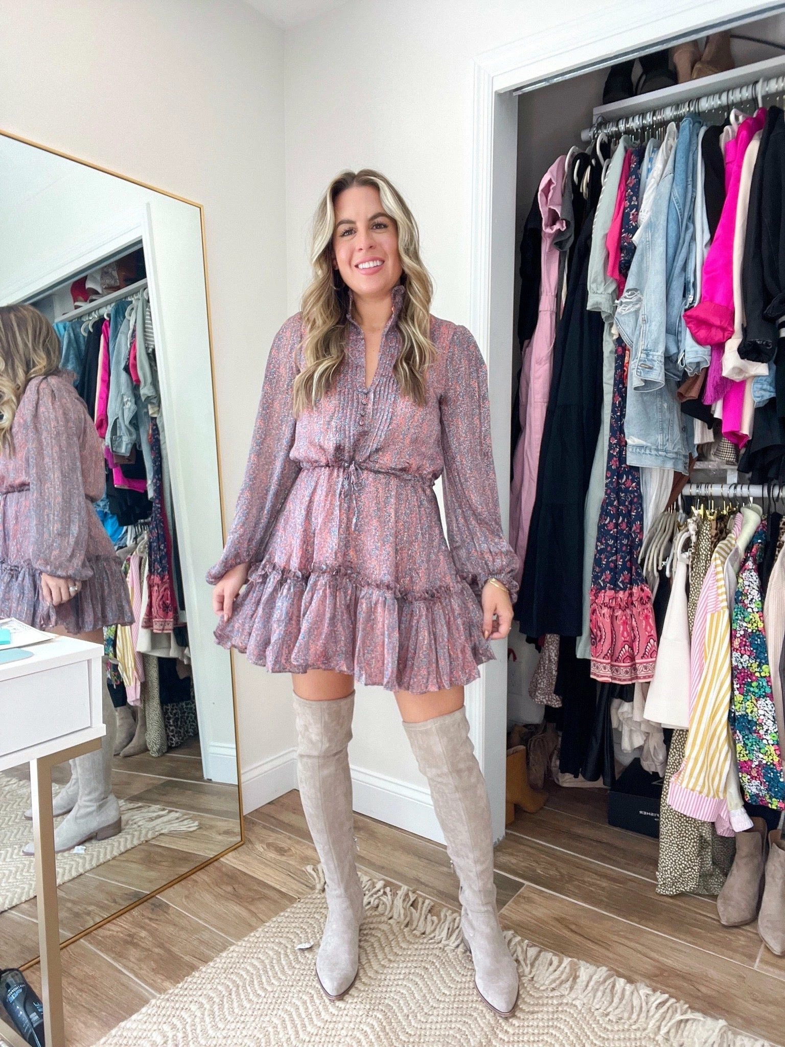 You won’t be able to forget about our Grace Dress in Forget Me Not! Our Grace dress features ruffled detailing, drawstring waist, long sleeves with elastic wrist, and fully lined! Pair her with sneakers for a cute work outfit or booties for the perfect date night outfit!