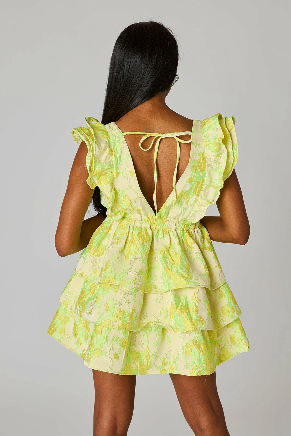A #babecrew favorite for the spring! The Hudson Dress features a tie closure in the back to adjust to your comfort, a slight puff sleeve, and a V neckline with hook and eye closure in the front and back. The Hudson is structured with ruffle tiers for a flattering fit! She looks great paired with a big earring and your favorite heels!