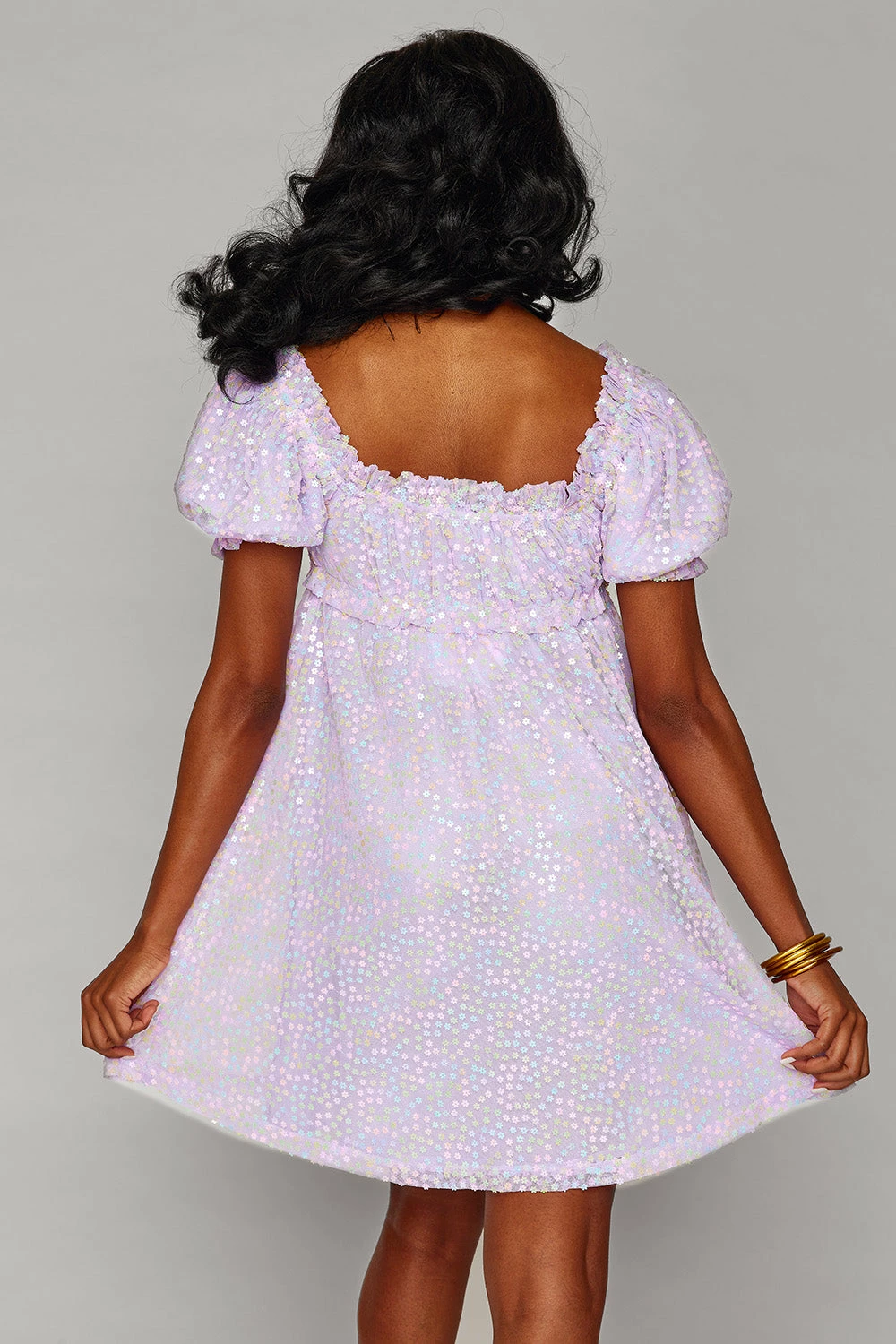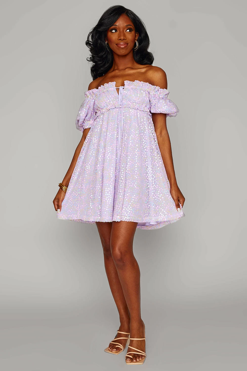 The Jac Dress has us in a Lavender Haze! Romance meets fun with sequins, puff sleeve and key hole front. This mini dress was made for your next soiree! The elastic neckline and hem give this dress a light and airy vibe. Pair with strappy heels, clutch, and statement earrings!