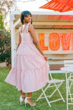 The Kaia is a playful, flowy silhouette, featuring ruffle tiers, a square neckline, shoulder ties and an orange base color with accents of light pinky flowers! Pair with simple flats or wedges and bold accessories!