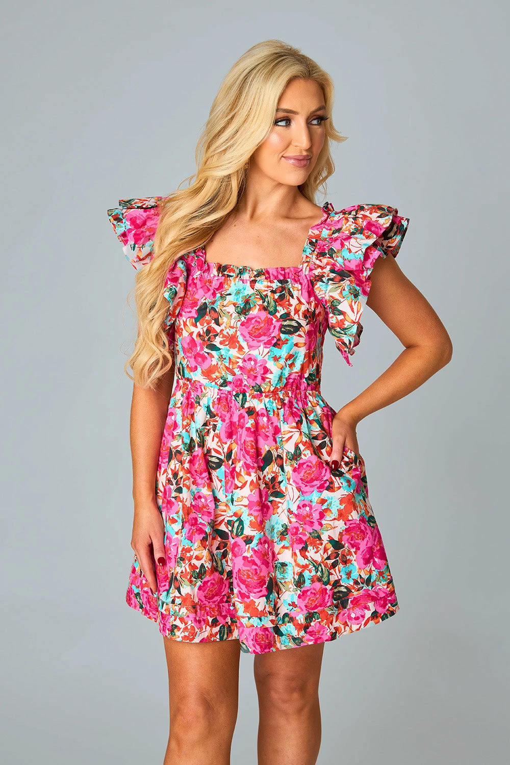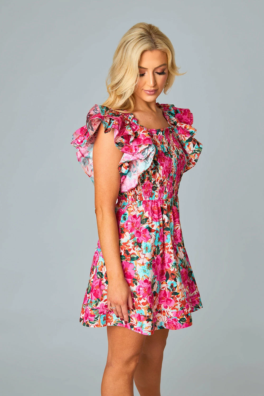 The cutie Kimber ruffle sleeve short dress is an adorable piece that has a smocked bodice, puff sleeves, and an eye-catching Sweet Dreams print! She’s reversible, and can be worn with the smocking in the back. Pair it with your favorite sandals and you’ll look chic on those hot summer days! We would style this with the matching Brianna Cannon xx BL Eleanor Headband for an effortlessly cute outfit!