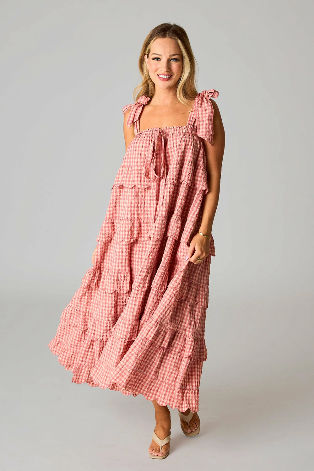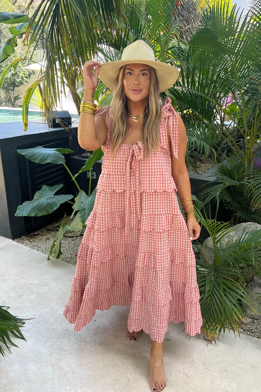 A maxi dress with a flattering oversized silhouette and details that bring it to life! Featuring a square neckline, elastic band around the top, adjustable tie straps, and ruffle tiers. This dress is comfortable enough to wear all day running errands with sneakers and cute enough to pair with a wedge for date night! The Landon can do it all!