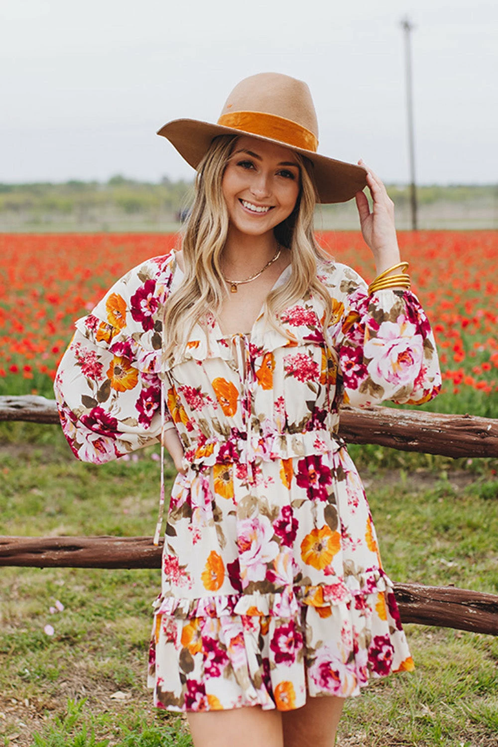 Our Lily Dress features an elastic waist, double tie neckline, tiered ruffle detailing, and elbow length sleeves with an elastic rim. She’s perfect for weddings, date night or just brunch with the girls! Pair her with your fave booties and your set!