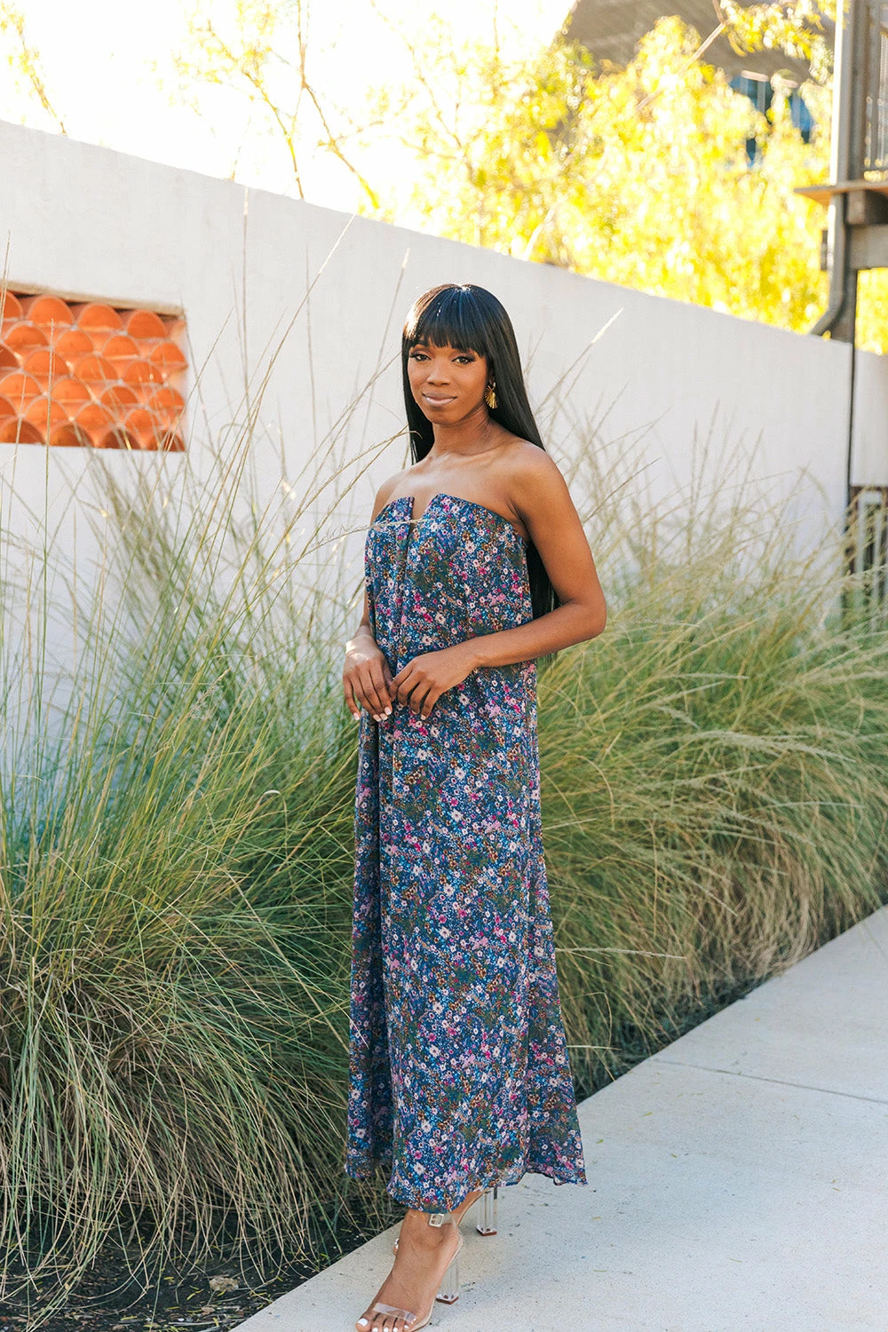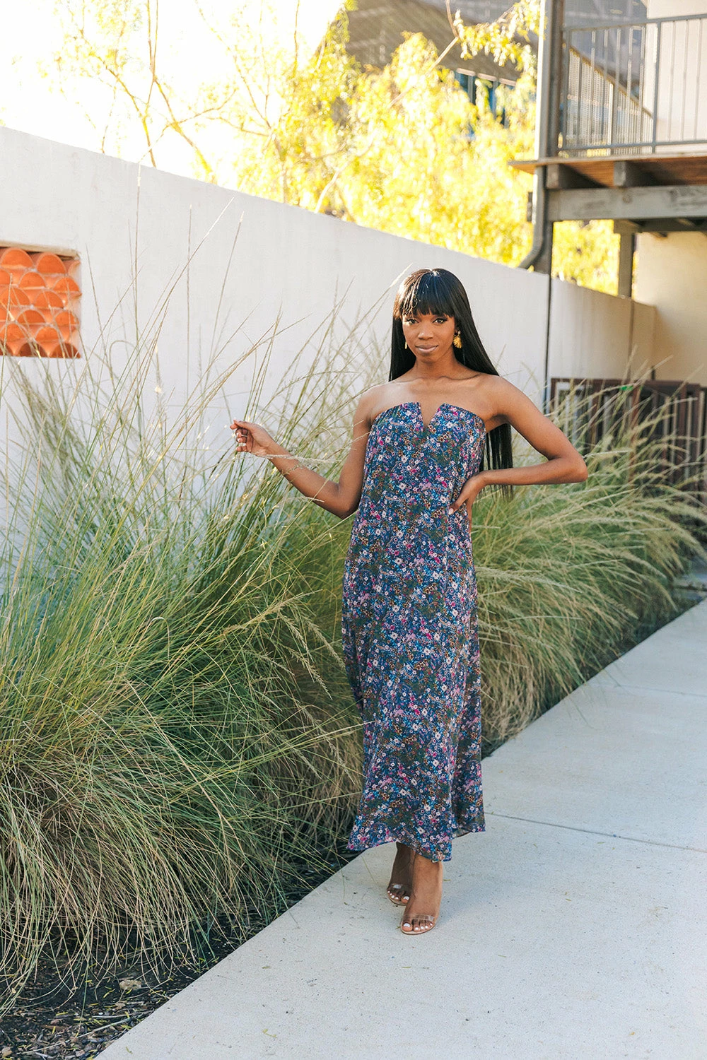 BRAND NEW DRESS ALERT! We’re introducing our new Luca Dress in a new pattern- Hollyhock! She’s easy, breezy, beautiful, and you’ll feel like a covergirl in her! This strapless maxi runs has a structured v bust with grips on the inside to keep her up all day and night! Pair her with some statement jewelry for some extra flare!