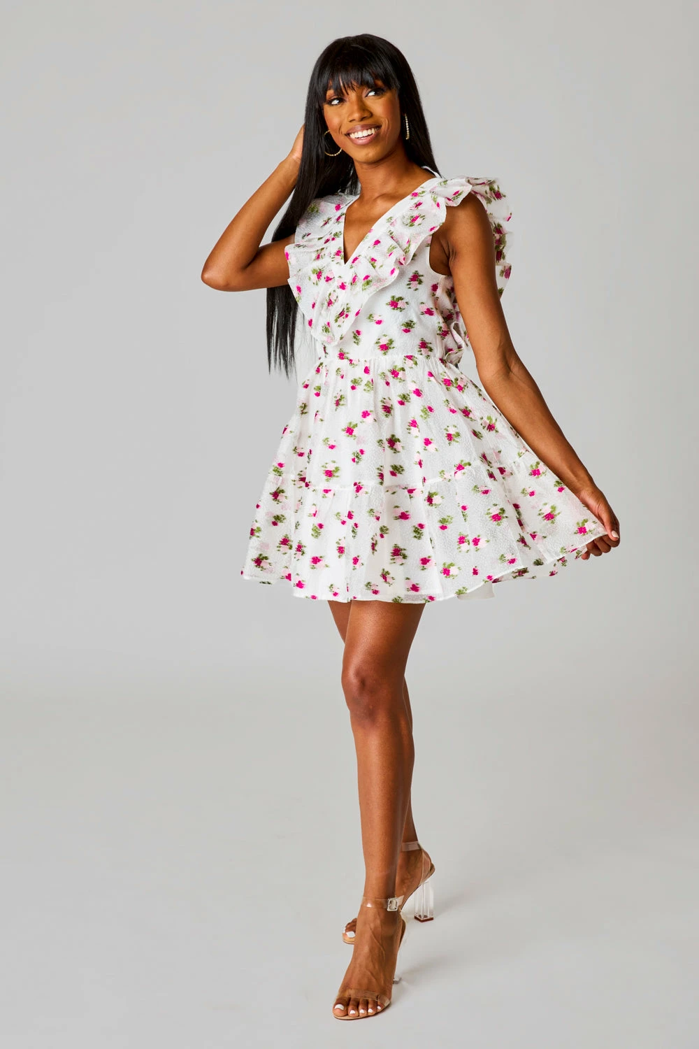 You will be just smitten in this Maddison mini dress! The Maddison Dress features a tie closure and smocked back panel to adjust to your comfort, a ruffled sleeve, and a ruffled V neckline. The Maddison is structured with a bottom ruffled tier for a flattering fit! She looks great paired with a big earring and your favorite heels!