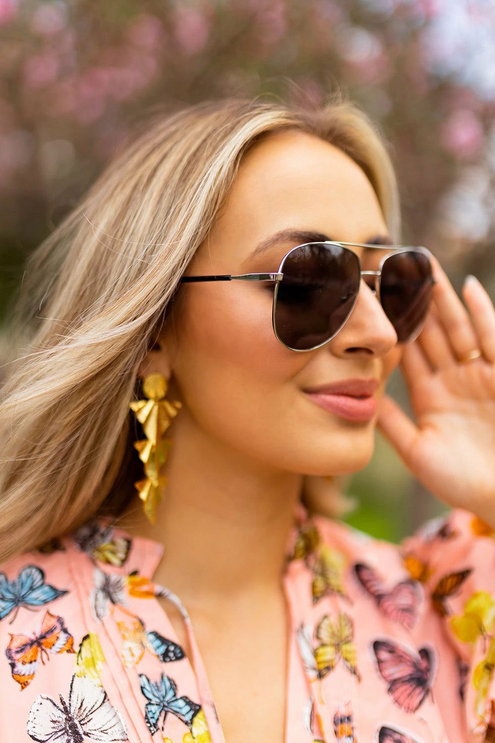 Our Maverick Aviators are a must have style staple. She features metal frames and black tinted lenses. All of our Sunglasses are Scratch Resistant, UVA and UVB ray protection, Etched BuddyLove Logo on lenses, BuddyLove Engraved ear piece and includes pink velour pouch/lens cleaner and gift box. The perfect accessory to all of your outfits!