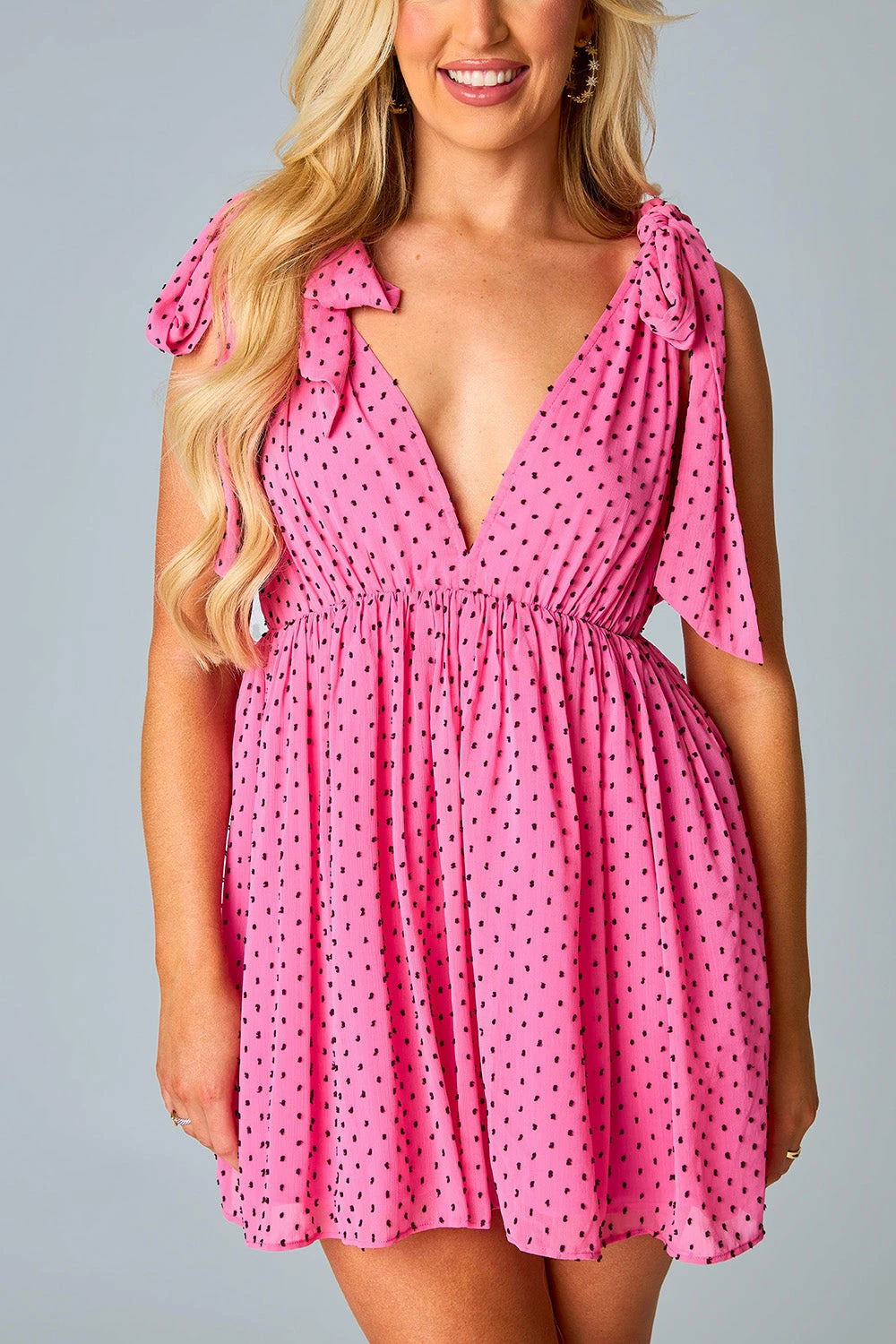The all new Melanie Dress will make everyone swoon! This dress boasts textured Swiss dots throughout and features a V-neckline in the front and back, tie shoulder straps and a hook and eye closure on the bust to adjust to your comfort. The cinched elastic waist in the skirt adds the a flattering touch to complete the dress! She’s a part of our Lynlee Poston xx BuddyLove Collection, and is perfect for all your spring and summer vacations!