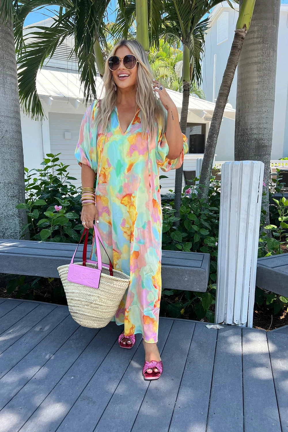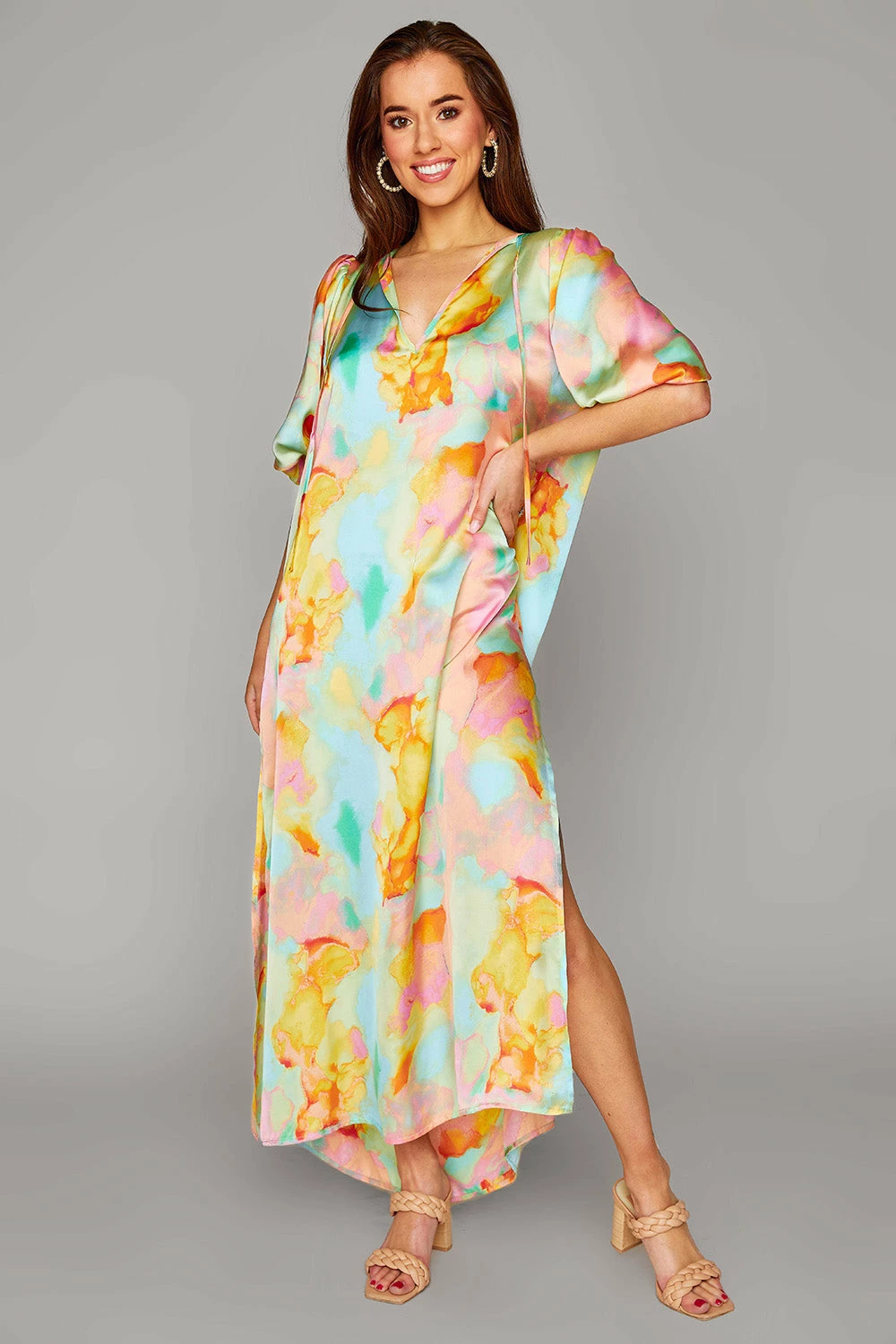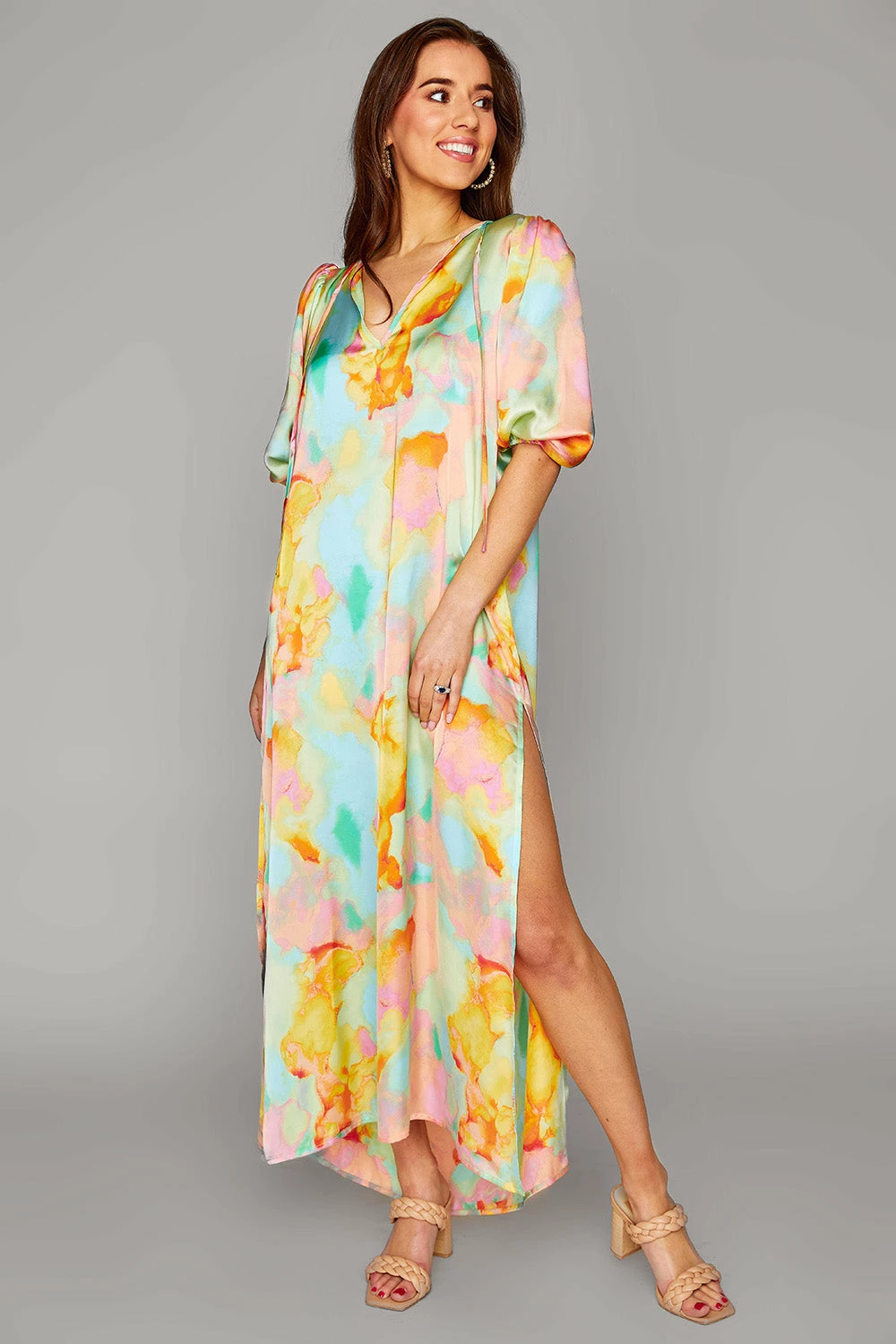 Looking so good has never been so easy with the NEW Pamela dress featuring a v neckline, elbow length sleeves with elastic for comfortability, side slits and a maxi silhouette and length. Dress it up with heels for a date night out or dress it down with sneakers to go shopping!