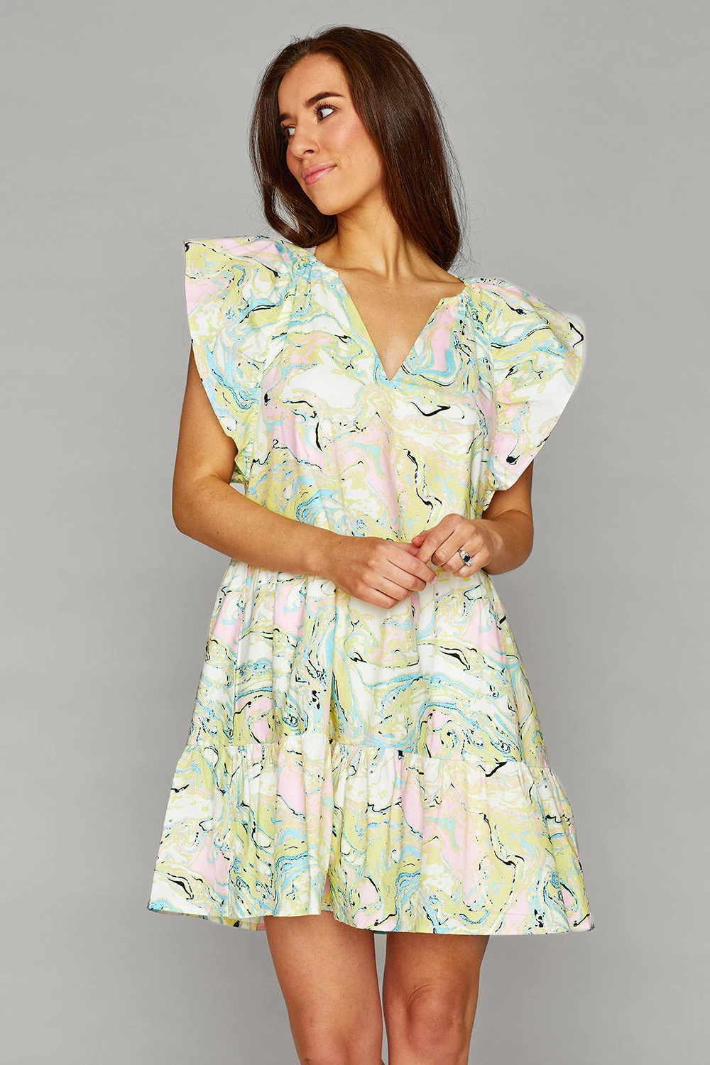 This dress has us feeling flirty and flawless! The Ronnie Dress features a v neckline, a flowy silhouette and mini length. Pair with flat sandals for an effortless look!