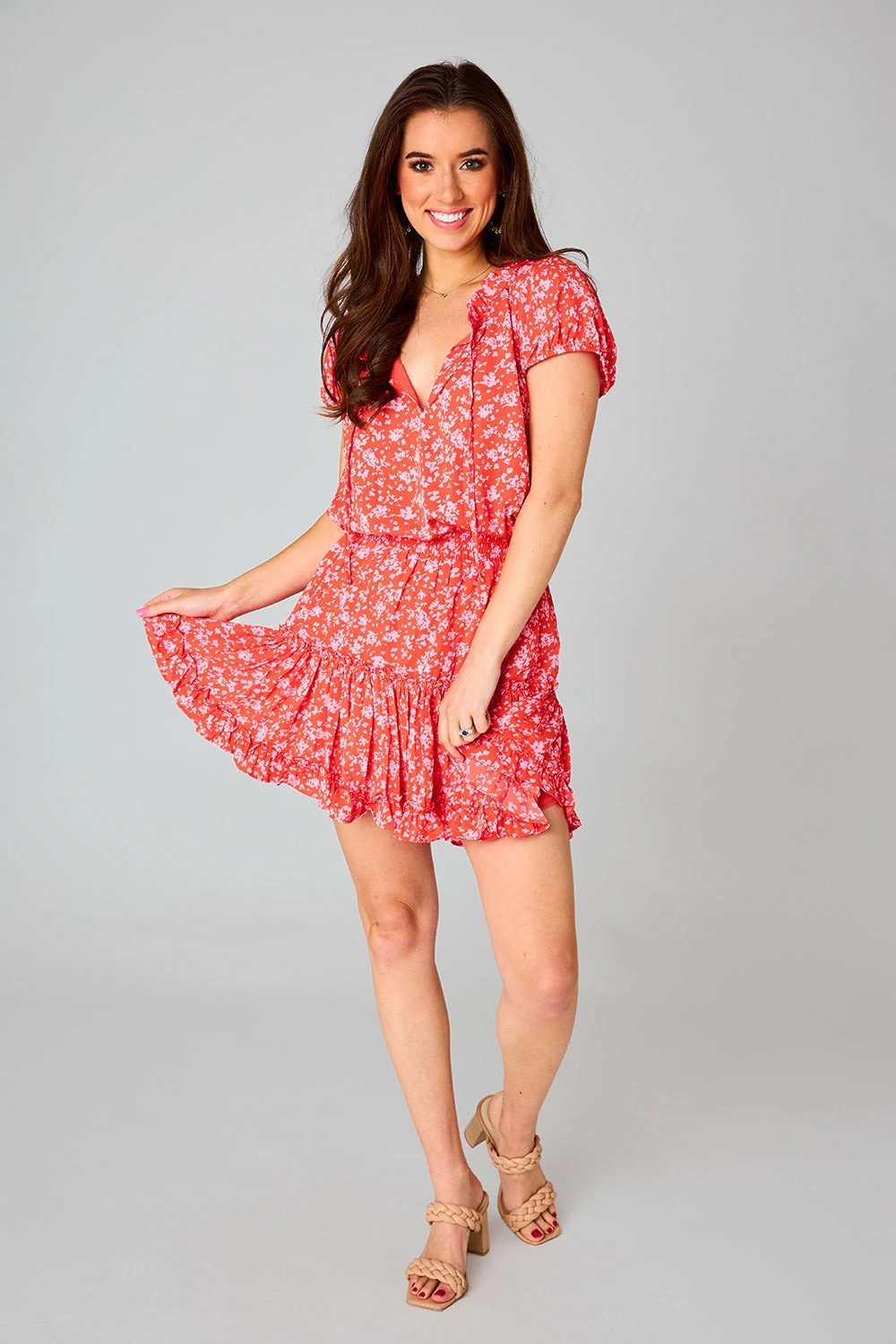 Statement sleeve + ruffled skirt = perfection. Our Roxy dress is perfect for any occasion! She features a short sleeve, v neckline with tassels to tie closed or keep open, flattering ruffled skirt, and smocked waist. Wear her with booties or wedges to dress her up, or sneakers for that cool girl vibe.