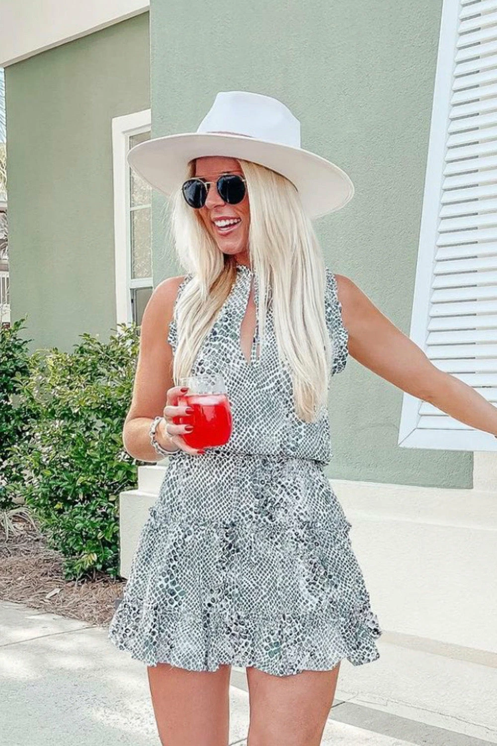 Spend weekends in style all season long in our Sage dress featuring a v neck, drawstring waist, and ruffled hem. Perfectly paired with your comfiest sandals for a casual vibe, or dress her up with some wedges!