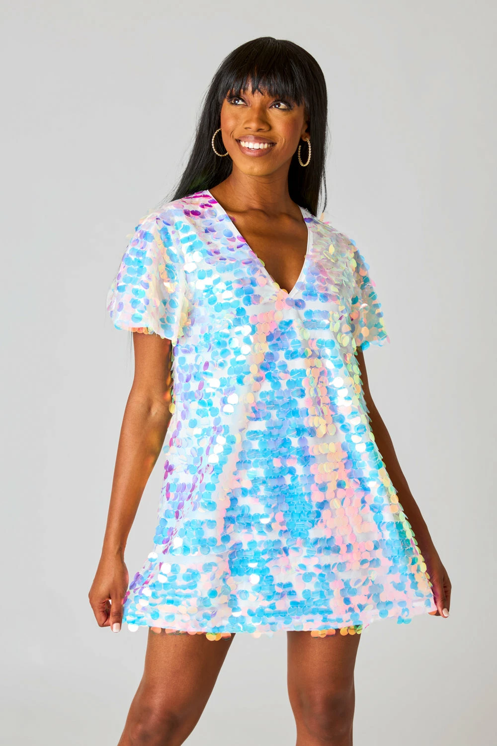 The Taya has us in our 1989 Era! She’s an easy and flattering shift dress that you are sure to love! She features a v neck, flutter sleeves, keyhole button closure in the back, and disc sequins. Wherever you wear the Taya, compliments are sure to follow!