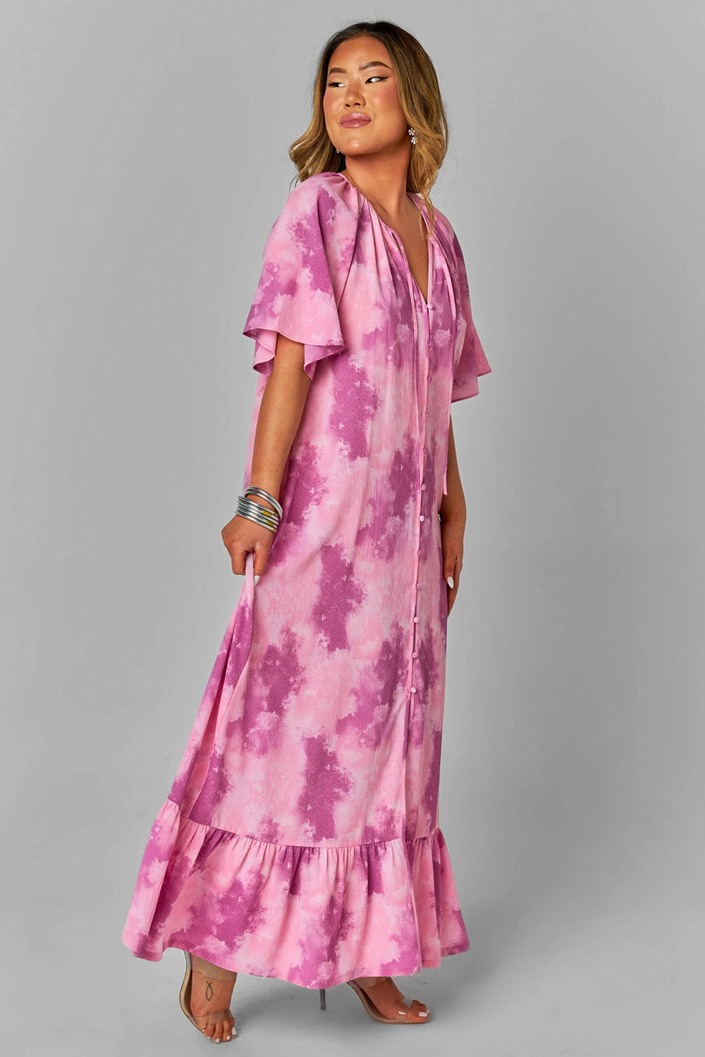 - Length: Maxi Length. The small measures to be 52″ from shoulder to hem.