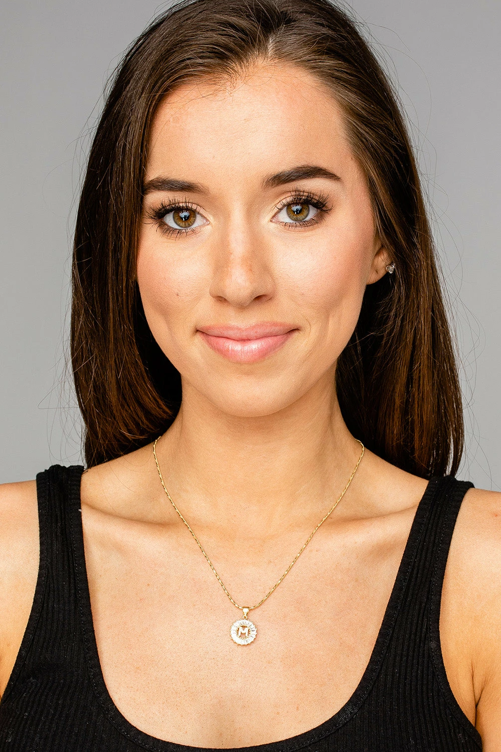 - Crystal Initial Letter on 18 inch heavy plated Gold Nickel-Free Chain