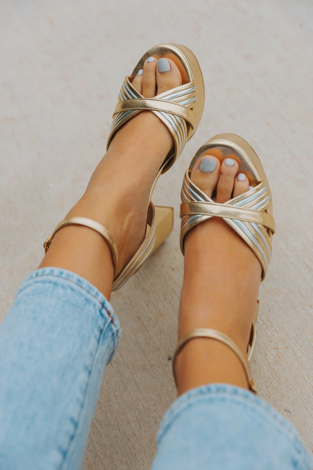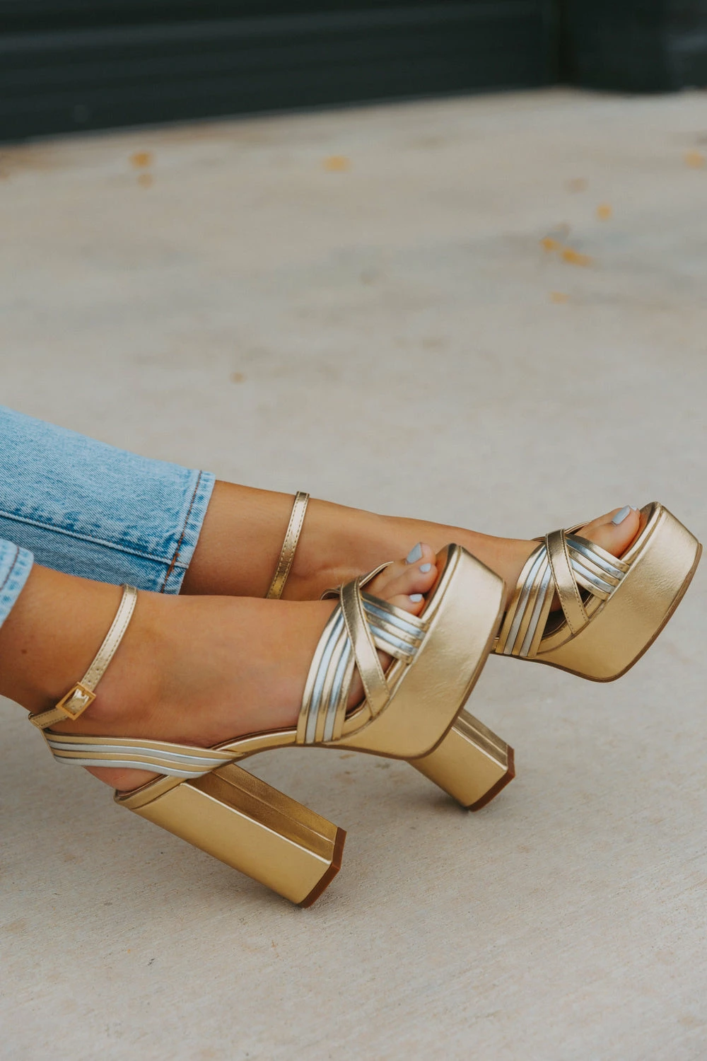 Our Eloisa HeelsΒ are made from faux metallic leather with a towering platform sole, chunky heel and a delicate, yet sturdy ankle strap. Style yours with your favorite BuddyLove mini dress.