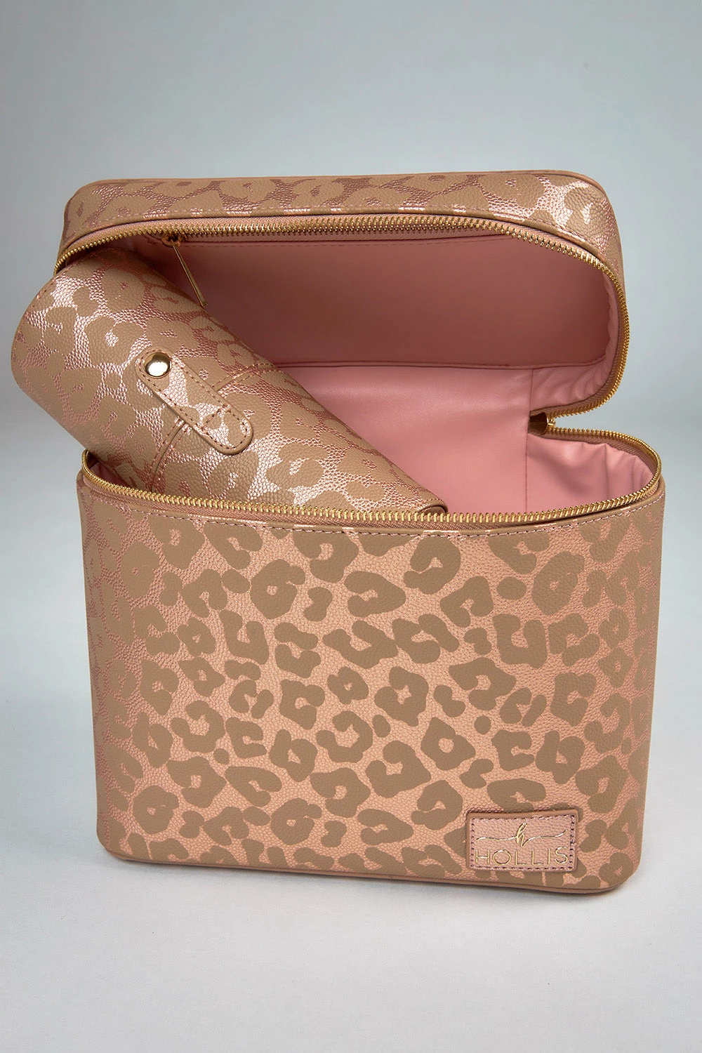 Leopard Lux! Your travel game just changed. Yβall ask for bigger and better leopard and we have delivered! This bag has a place for everything. From its one of a kind brush holder (comes included) to its amazing functionality this bag will not disappoint. Compartments for foundations, mascaras, eyebrow pencils and everything in between. This beauty fits the biggest of full size pallets. Zipper compartment up top to hold jewelry or other small items. The quality is unmatched and this bag is sure to be a show stopper.