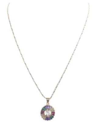 - Rainbow Initial Letter on 18 inch heavy plated Gold Nickel-Free Chain.