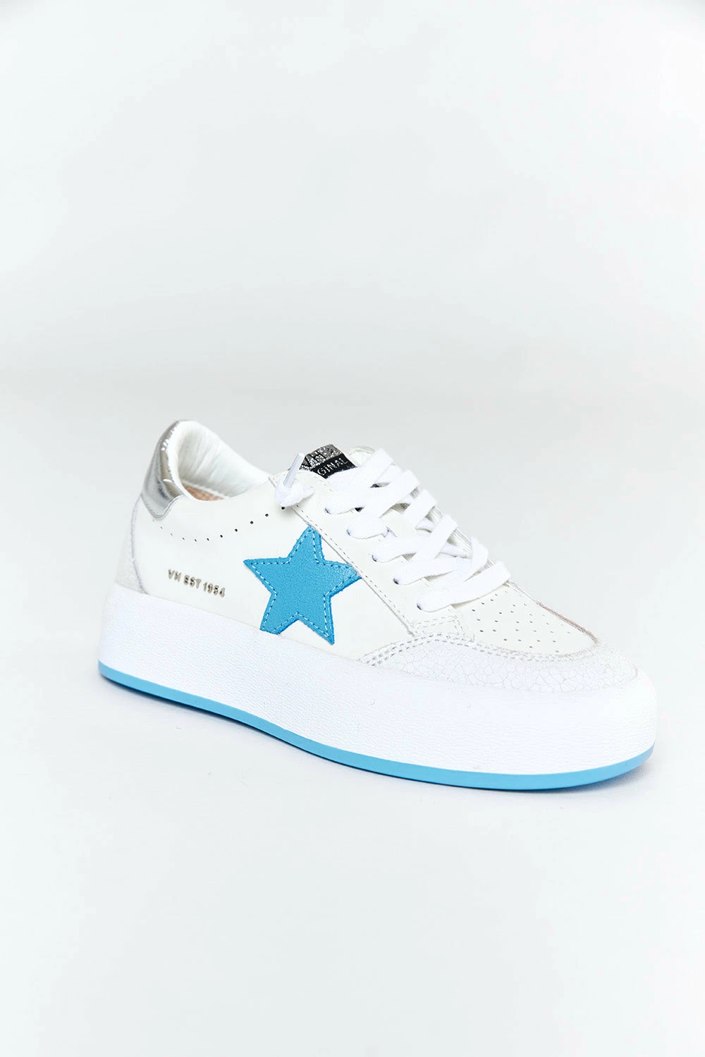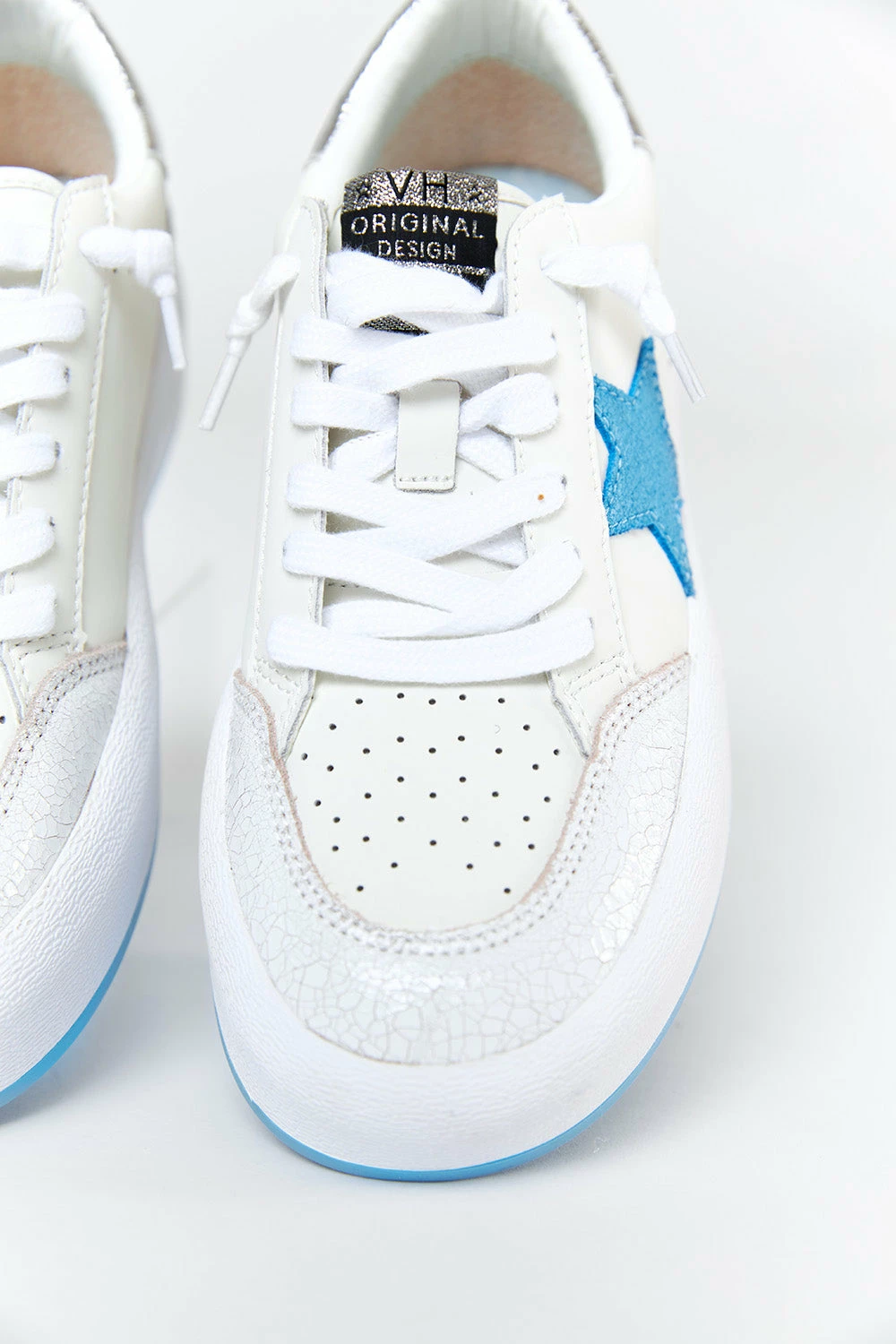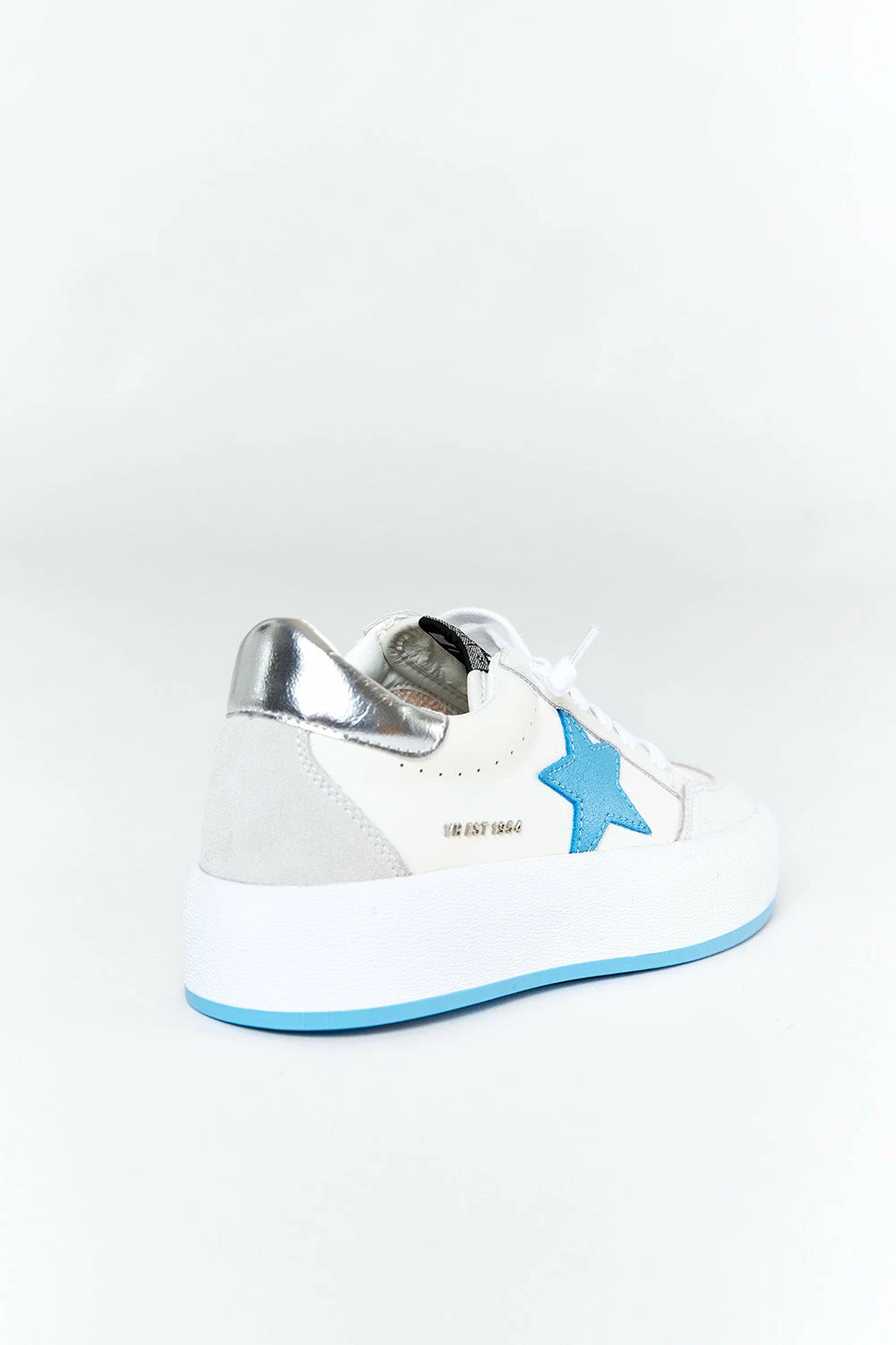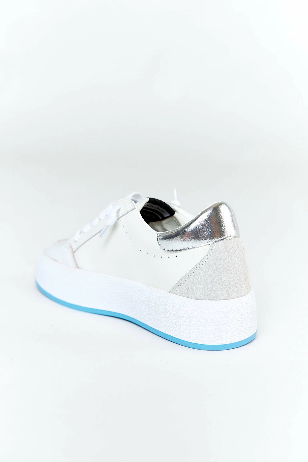 If you’re wondering if you need these… The answer is YES! The perfect classic sneaker to add to your closet! An off white look with blue and silver detailing, the blue sole adds the perfect touch!