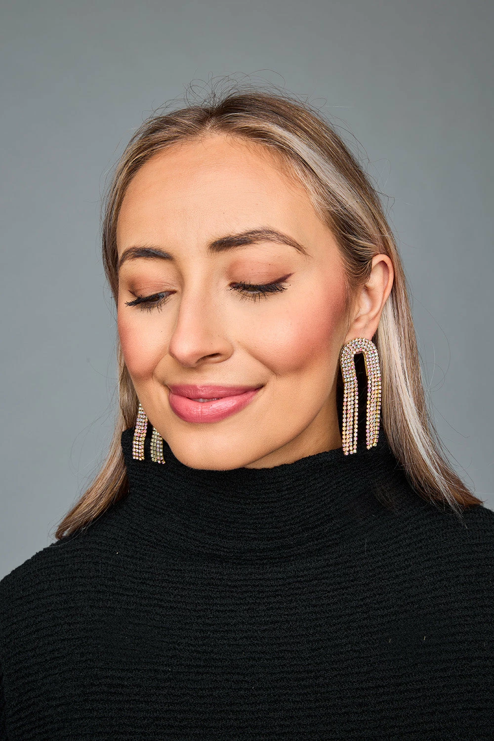 Sophisticated yet fun are these earrings! With 4 rows of iridescent diamonds, these pair well with any outfit!