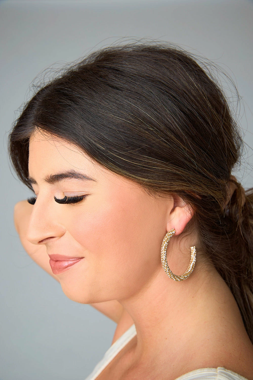 The Riley Hoops are your not so basic gold hoops. They have a little extra sparkle to them and will shine– just like you!